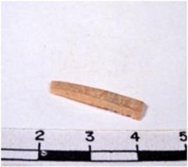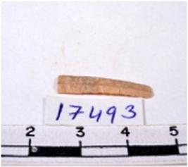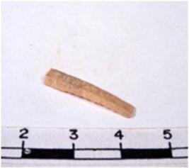 | Description / विवरण | A fragment of a rectangular shaped chert blade showing dorsal sides with sharp cutting edges having smooth surface and triangular section. |
