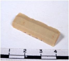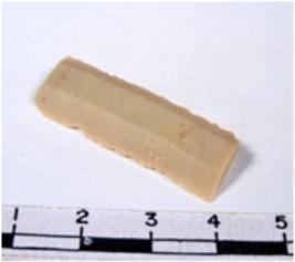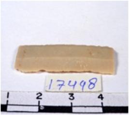 | Description / विवरण | A fragment of a rectangular shaped chert blade showing parallel sides with sharp cutting edges having smooth surface and uneven section. |