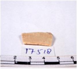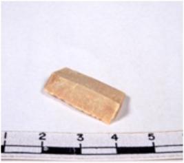 | Description / विवरण | A fragment of a rectangular shaped chert blade showing dorsal sides with sharp edges having smooth surface and triangular section. |