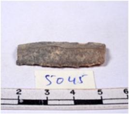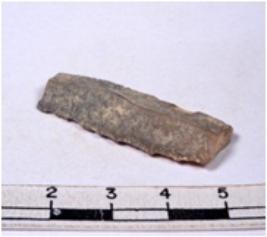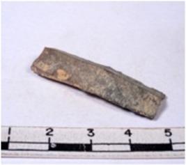 | Description / विवरण | A fragment of a rectangular shaped chert blade showing dorsal sides with sharp edges having smooth surface and triangular section. |