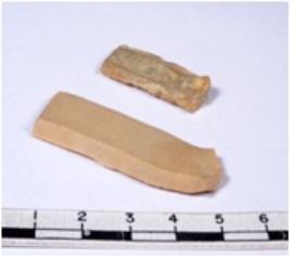 | Description / विवरण | A fragment of a rectangular shaped chert blade showing parallel sides with edges having smooth surface and uneven section. |