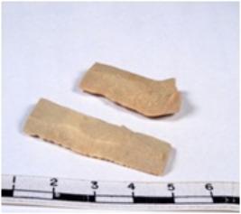 | Description / विवरण | A fragment of a rectangular shaped chert blade showing dorsal sides with sharp edges having smooth surface and triangular section. |