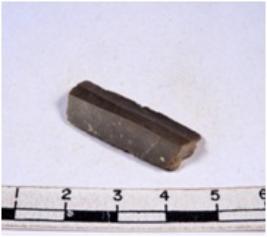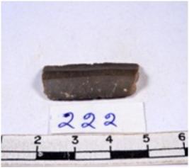 | Description / विवरण | A fragment of a rectangular shaped chert blade showing dorsal sides with sharp edges having smooth surface and triangular section. |