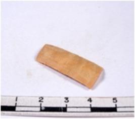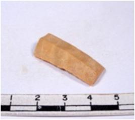 | Description / विवरण | A fragment of a rectangular shaped chert blade showing parallel sides with sharp edges having smooth surface and triangular section. |
