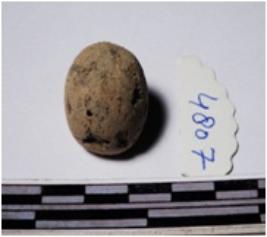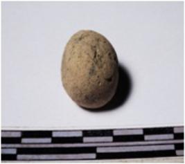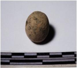 | Description / विवरण | A fragment of a sling ball globular in shape of smooth surface. |