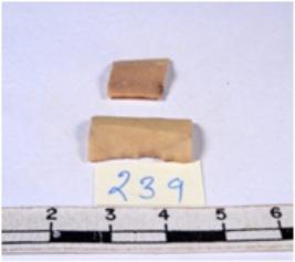 | Description / विवरण | A fragment of a rectangular shaped chert blade showing dorsal sides with sharp edges having smooth surface and triangular section. |