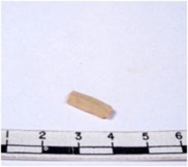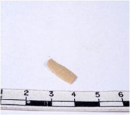 | Description / विवरण | A fragment of a rectangular shaped chert blade showing dorsal sides with sharp edges having smooth surface and triangular section. |