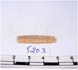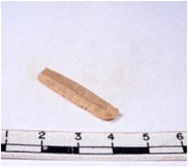 | Description / विवरण | A fragment of a rectangular shaped chert blade showing dorsal sides with sharp cutting edges having smooth surface and triangular section. |
