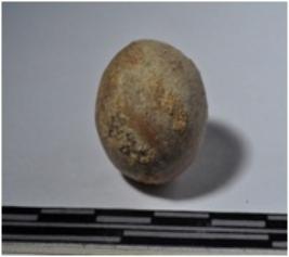 | Description / विवरण | A small terracotta round in shaped sling ball of smooth surface. |
