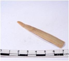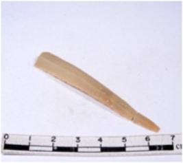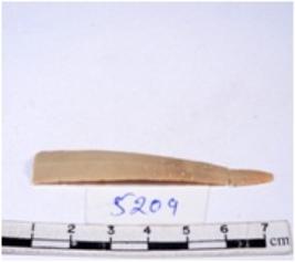 | Description / विवरण | A fragment of a rectangular shaped chert blade showing dorsal sides with sharp edges having smooth surface and triangular section. |