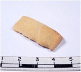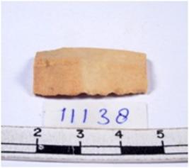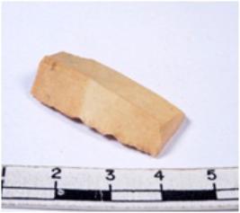 | Description / विवरण | A fragment of a rectangular shaped chert blade showing dorsal sides with sharp cutting edges having smooth surface and triangular section. |