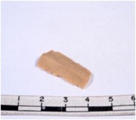 | Description / विवरण | A fragment of a rectangular shaped chert blade showing dorsal sides with sharp cutting edges having smooth surface and triangular section. |