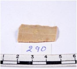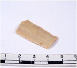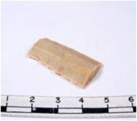 | Description / विवरण | A fragment of a rectangular shaped chert blade showing dorsal sides with sharp edges having smooth surface and triangular section. |