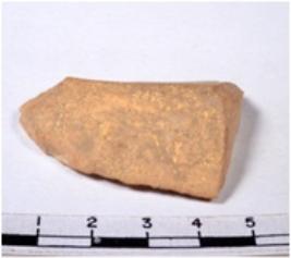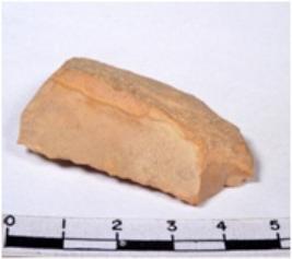 | Description / विवरण | A fragment of a oval shaped chert blade showing dorsal sides with sharp cutting edges having smooth surface and triangular section. |