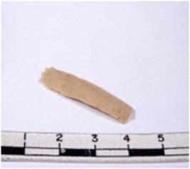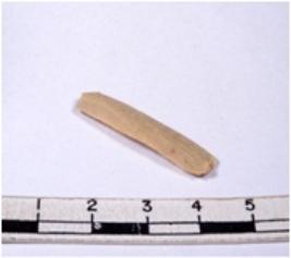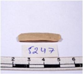 | Description / विवरण | A fragment of a rectangular shaped chert blade showing dorsal sides with sharp cutting edges having smooth surface and triangular section. |