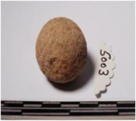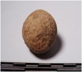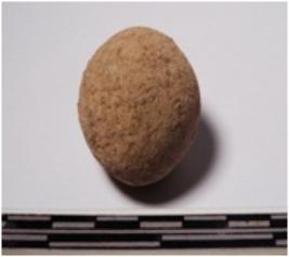 | Description / विवरण | A terracotta sling ball round in shape of smooth surface. |