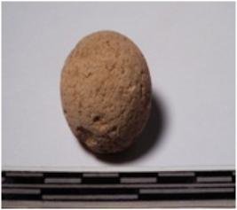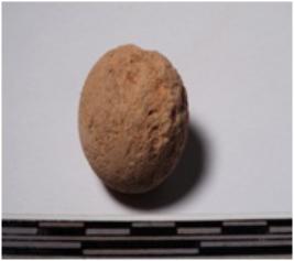 | Description / विवरण | A fragment of a terracotta round in shaped sling ball, circular in section of rough surface. |