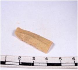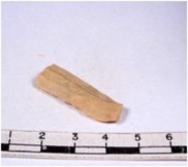| Description / विवरण | A fragment of a rectangular shaped chert blade showing dorsal sides with sharp edges having smooth surface and triangular section. |