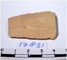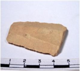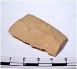 | Description / विवरण | A fragment of a rectangular shaped chert blade showing flat sides with sharp cutting edges having smooth surface and uneven section. |