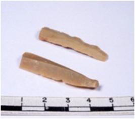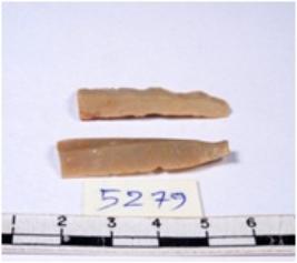 | Description / विवरण | A fragment of a rectangular shaped chert blade showing dorsal sides with sharp edges having smooth surface and triangular section. |