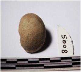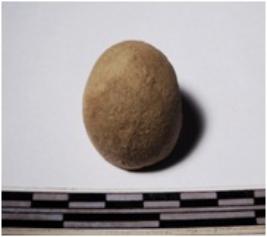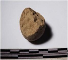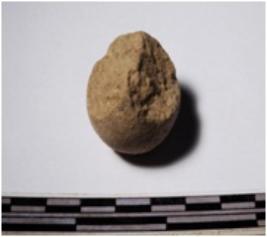 | Description / विवरण | A fragment of a terracotta round in shaped sling ball, circular in section of smooth surface. |