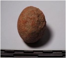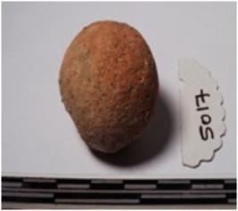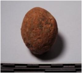| Description / विवरण | A terracotta round in shaped sling ball of rough surface. |