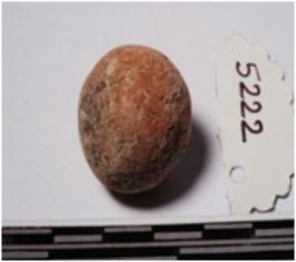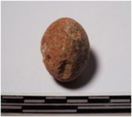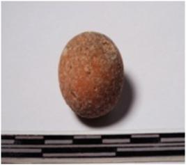 | Description / विवरण | A terracotta round in shape shaped sling ball, circular in section of rough surface. |