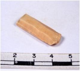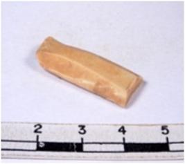 | Description / विवरण | A fragment of a rectangular shaped chert blade showing parallel sides with sharp edges having smooth surface and triangular section. |