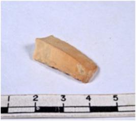 | Description / विवरण | A fragment of a rectangular shaped chert blade showing dorsal sides with sharp edges having smooth surface and triangular section. |