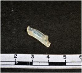 | Description / विवरण | A fragment of a rectangular shaped chalcedony blade showing dorsal sides with sharp edges having smooth surface and triangular section. |