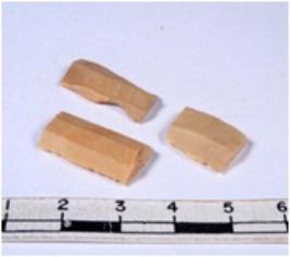 | Description / विवरण | A fragment of a rectangular shaped chert blade showing dorsal sides with sharp edges having smooth surface and triangular section. |