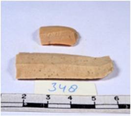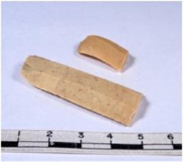 | Description / विवरण | A fragment of a rectangular shaped chert blade showing dorsal sides with sharp edges having smooth surface and triangular section. |