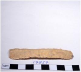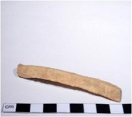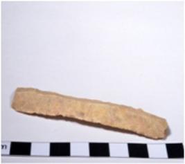 | Description / विवरण | A fragment of a rectangular shaped chert blade showing dorsal sides with sharp cutting edges having smooth surface and triangular section. |