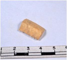 | Description / विवरण | A fragment of a rectangular shaped chert blade showing dorsal sides with sharp cutting edges having smooth surface and triangular section. |