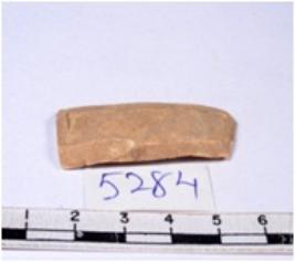| Description / विवरण | A fragment of a rectangular shaped chert blade showing dorsal sides with sharp edges having smooth surface and triangular section. |