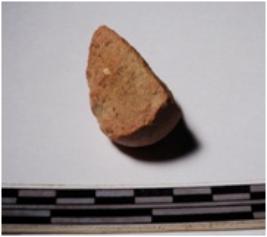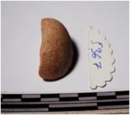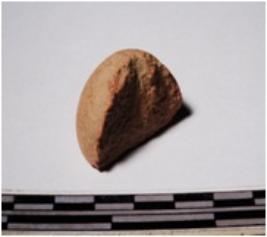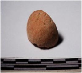 | Description / विवरण | A fragment of a terracotta sling ball circular in shape of smooth surface. |