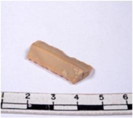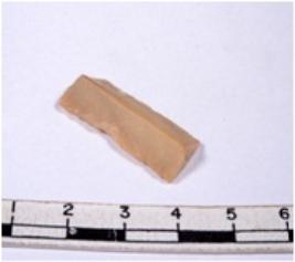 | Description / विवरण | A fragment of a rectangular shaped chert blade showing dorsal sides with sharp edges having smooth surface and triangular section. |