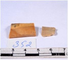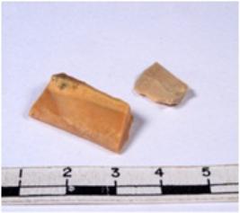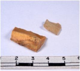 | Description / विवरण | A fragment of a rectangular shaped chert blade showing dorsal sides with sharp cutting edges having smooth surface and triangular section. |