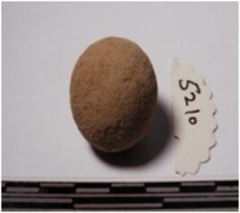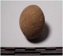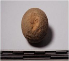 | Description / विवरण | A terracotta sling ball round in shape of smooth surface. |
