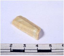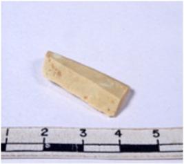 | Description / विवरण | A fragment of a rectangular shaped chert blade showing dorsal sides with sharp edges having smooth surface and triangular section. |