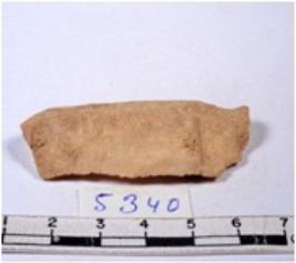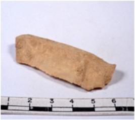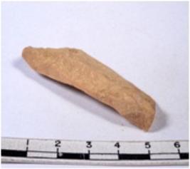 | Description / विवरण | A fragment of a rectangular shaped chert blade showing dorsal sides with sharp cutting edges having smooth surface and triangular section. |