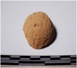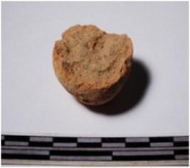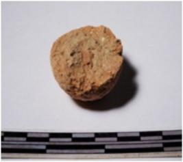 | Description / विवरण | A fragment of a terracotta ball of smooth surface. |