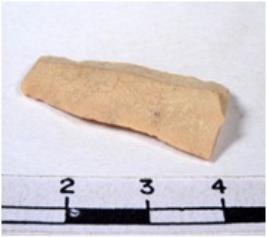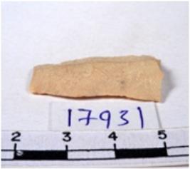 | Description / विवरण | A fragment of a rectangular shaped chert blade showing dorsal sides with sharp edges having smooth surface and uneven section. |