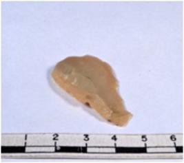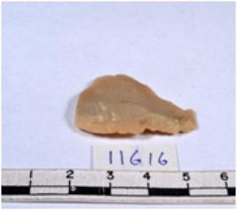 | Description / विवरण | A fragment of a triangular shaped chert blade showing dorsal sides with sharp edges having smooth surface and triangular section. |