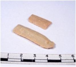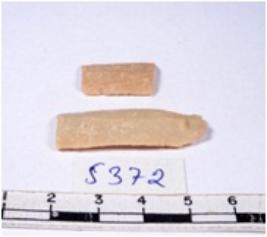 | Description / विवरण | A fragment of a rectangular shaped chert blade showing dorsal sides with sharp cutting edges having smooth surface and triangular section. |