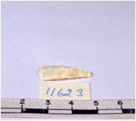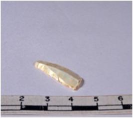 | Description / विवरण | A fragment of a rectangular shaped chalcedony blade showing dorsal sides with sharp edges having smooth surface and triangular section. |