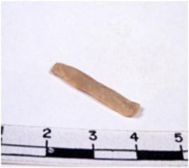 | Description / विवरण | A fragment of a rectangular shaped chert blade with sharp cutting edges of smooth surface, it is in triangular section. |