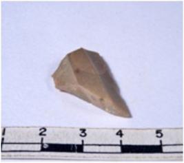 | Description / विवरण | A fragment of a rectangular shaped chert blade showing dorsal sides with sharp edges having smooth surface and triangular section. |