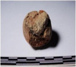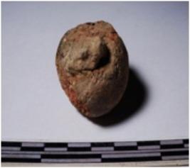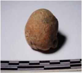 | Description / विवरण | A terracotta sling ball round in shape information of smooth surface. |