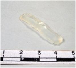 | Description / विवरण | A fragment of a rectangular shaped chalcedony blade showing dorsal sides with sharp cutting edges having smooth surface and triangular section. |